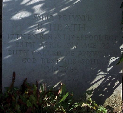 Edward enlisted in London joining the London Divisional Cyclist Company as Private 16311. He transferred to the 17th Battalion of The King's Liverpool Regiment as Private 58019 and was killed in action on 28th April, 1917, aged 22.