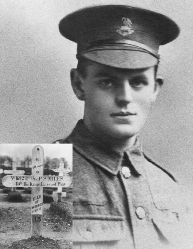 MILES - February 6, died of wounds received in action, aged 21 years, Private Percy Septimus Miles, 18th King's Liverpool Regiment (2nd Pals), son of Mr and Mrs John H. Miles, 11 Crescent Road, Egremont.