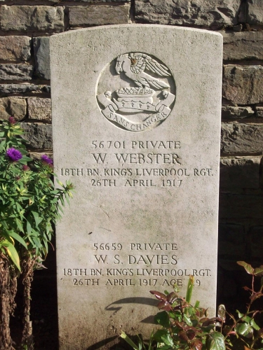 William was serving with the 18th Battalion of The King's Liverpool Regiment as Private 56701 when he was killed in action on 26th April 1917.