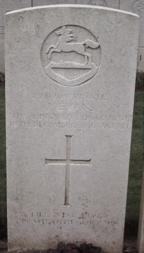 Joseph Evans was born in Liverpool in 1894 and was baptised at St Anne's Chuch Aigburth on 02nd December 1894. He was the youngest son of John Evans and his wife Louisa (nee Prince). They had married in 1885 at St Michael's Church ,Toxteth.