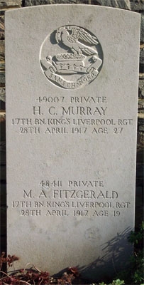 Michael enlisted in Liverpool and was serving with the 17th Battalion of The King's Liverpool Regiment as Private 48411 when he was killed in action on 28th April 1917 aged 19.