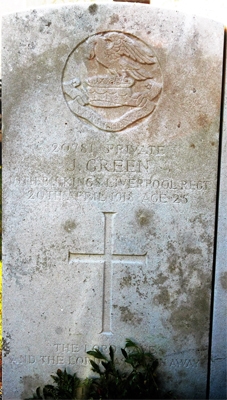 John was serving in the 19th Battalion, The King’s Liverpool Regiment as Private No 20781 when he died of wounds on the 20th April 1918 aged 25 during the German Spring Offensive.