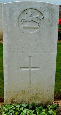 "News has been received by Mr and Mrs Bateman of the death in action on July 1st, of their only son, Norman. He resided with his parents at 14 Underley Street, Liverpool. He was a member of the Webster Road, Welsh Chapel and was employed at the Toxteth Co-operative Society. He joined the Pals in December 1914."