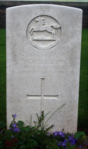 “On October 10th, killed in action, Pte. William E. Leece, King’s Liverpool Regiment, eldest son of the late Thomas and Sarah Leece, Bridge Street, Peel. ‘His duty nobly done’. ”