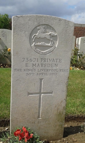 CWGC records show that Ellis was serving wth the 18th Battalion of The King's Liverpool Regiment as Private 73671 when he died on 20th April 1917, aged 39.