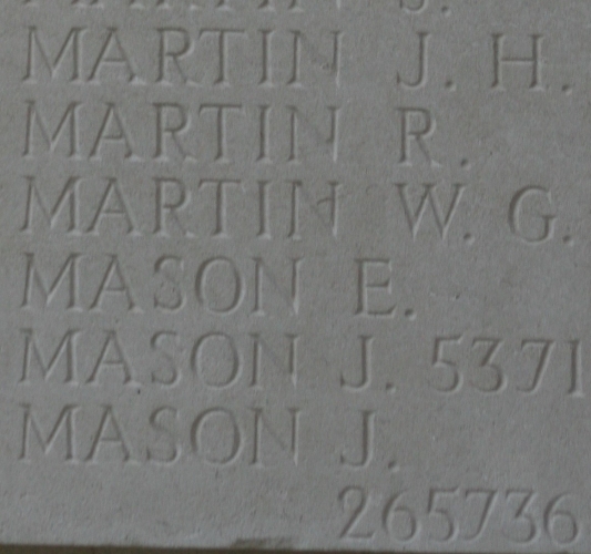 "July 30, killed in action, Private J. H. Martin, 22767 (Pals), eldest son of Mrs. and the late Mr. Martin."