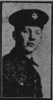 Pte. R. Mayoh, of the 3/9th(sic) King's Liverpool Regt., who died on October 13th as the result of wounds received in action. His parents reside at the De Rothwell Arms, Cox Green, Turton.