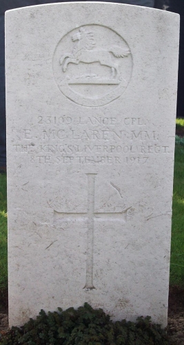 MCLAREN - In memory of Lance Corporal E.McLaren MM, King's Liverpool Regiment - Greatly missed by his chum George (wounded) and Joe and Will (in France).