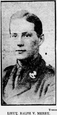 “Lieut. Ralph V Merry, King's (Liverpool Regiment) who has been officially reported killed in action, he is the second son of Mr. A. Merry of 63 Manor Road, Liscard. He was only 22 years of age and joined the Liverpool Pals as a private soon after the outbreak of war, subsequently given a commission in the battalion. An old Grammar School boy, he was a prominent athlete and won one of the schools athletic championships. In business he was connected with the Liverpool branch of a London firm of metal merchants”.