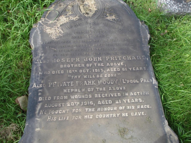 FRANK MOODY - Private – 22484 – 20th Kings Liverpool - Died of wounds 20/8/1916