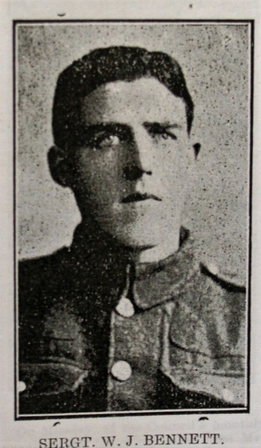 In our issue of April 13th, we announced that Sergeant Wm. J. Bennett, K.L.R., had been awarded the Military Medal for gallantry in action. On that occasion we also published Sergeant Bennett's photograph and a brief notice of his career. It is now our painful duty to record that Sergeant Bennett fell in action on Easter Monday. He is the second of five soldier sons of Mr. and Mrs. Bennett, 15, Clare-road, Bootle, who have been given to their country. His elder brother, Sergeant Tom Bennett, who was connected with the R.A.M.C., contracted a fever while on duty in July last, and never recovered.