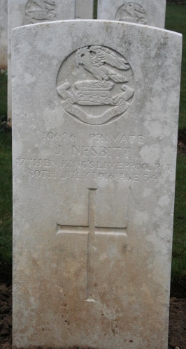 His eldest brother William joined the 3rd Battalion of The King's Liverpool Regiment in 1894 in Warrington when he was 19 (signed Nesbitt), and in April 1895 was posted to 2nd Bn. K.L.R. He was transferred to the Reserve in 1902, and discharged in 1907 after 12 years' service.
