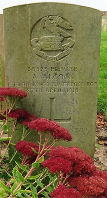 On 20th September 1917 his eldest first born brother Joseph Peter Alcock was killed in action in Belgium, aged 24, whilst serving as L/Cpl 265237 of 1/7th King's (Liverpool) Regiment. His body was not recovered from the battlefield and Joseph Peter is listed on the missing on the Tyne Cot Memorial in Belgium.