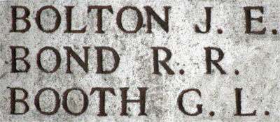 BOLTON - In loving memory of J.E. (FRED) BOLTON, who was killed in action at Ypres, July 31st, 1917, only and beloved son of ADA on the late TED BOLTON. "We miss him most who loved him best."