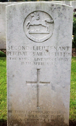 Sec.Lt. P. G. S TATTON -Sec Lt Percival G Statton, Kings Liverpool reported to have died 18th inst from wounds received on 9th was the son of Mr & Mrs W G Statton of Trafalgar Place, Stoke. He obtained his commission last December.