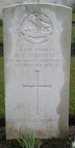 Tunstall - July 1, killed in action aged 21 years. William Ernest (“Our Nern”) Tunstall, (“Pals”). The dearly beloved second son of William and S.A. Tunstall, 19, Beechwood Avenue, Wallasey.