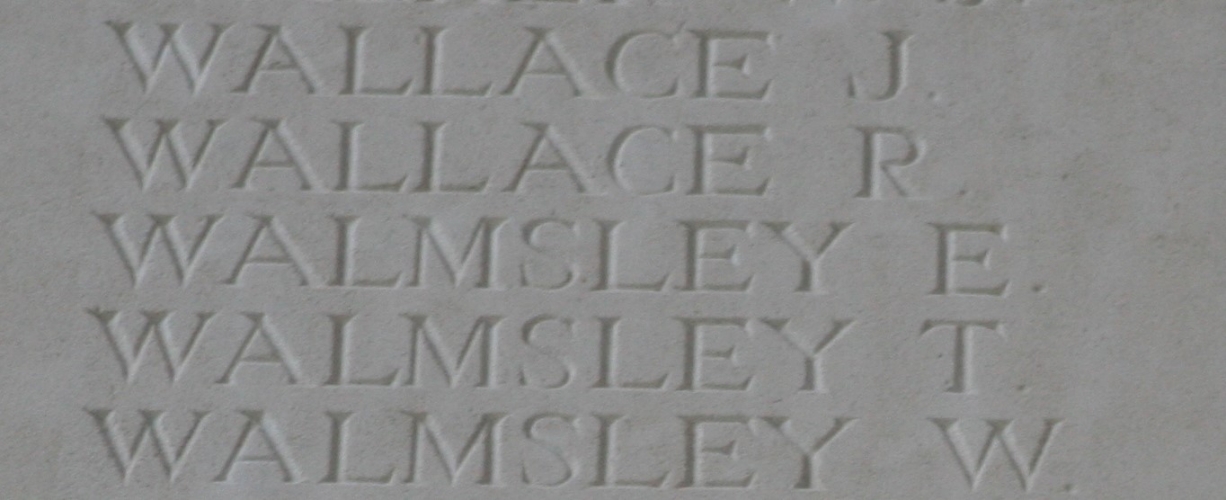 "Wallace - Dron - In dearly beloved memory of our brother Bob, killed in action July 30, 1916 K.L.R. (Pals); also my dear husband Francis Dron, killed in action December 6, 1917. (Our life-long sorrow.) - Never once forgotten by Amy and all at 34 McLoud Street, Everton."