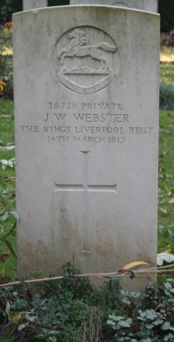 John Wilfred Webster was born in Liverpool in the June quarter of 1897 the eldest son of John Webster and his wife Elizabeth (nee Pilkington) who had married in St Philip's Church, Litherland. His father was born in Litherland and his mother in West Derby. They had four children: John had younger siblings William Harold, Doris, and Charles Herbert.