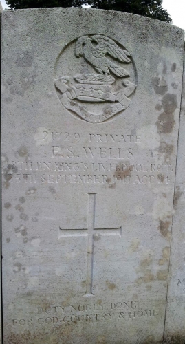 WELLS - September 25, aged 24 years, of wounds received in action, Private F. S. Wells (Fred), K.L.R., dearly loved eldest son of Mr and Mrs C. E. Wells, 68 Knocklaid Road, Clubmoor.
