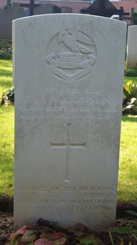 WILKINSON - August 17, killed on active service, Private Frank Wilkinson (K.L.R.), second dearly beloved son of Harry and Annie Wilkinson, 40 Grey Rock Street, Liverpool.
