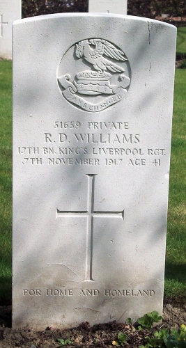 WILLIAMS - November 7, Private R. D. WILLIAMS ('Dick'), K.L.R., killed in action, aged 41 years, the dearly beloved brother of Mr W. R. Williams, 101 Smithdown Road, Liverpool. (Deeply mourned by the Family.)