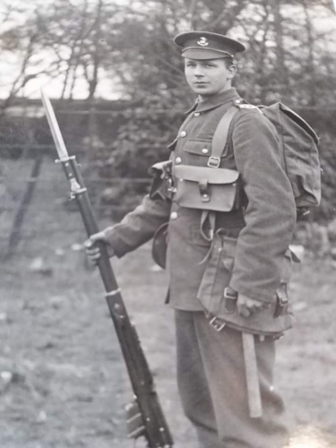 From the 23rd September 1914 he was billeted at Hooton Park Race Course and remained there until 03rd December 1914 when they moved into the hutted accommodation at Lord Derby’s estate at Knowsley Hall. On 30th April 1915 the 18th Battalion alongside the other three Pals battalions left Liverpool via Prescot Station for further training at Belton Park, Grantham. They remained here until September 1915 when they reached Larkhill Camp on Salisbury Plain. He arrived in France on 7th November 1915.