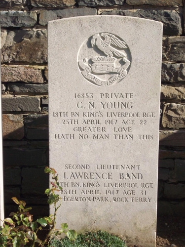 Norman was killed in action on 25th April 1917, aged 22. He is buried alongside Lieutenant Lawrence Band also of The King's Liverpool Regiment.