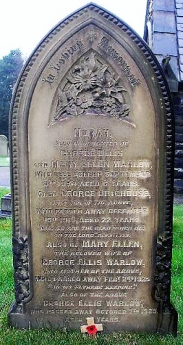 George Brighouse Warlow was born in Aughton, Lancashire, in the first quarter of 1893, the only son of George Ellis Warlow and his wife Mary Ellen (née Brighouse). George, a widower born in Lancaster, and Mary Ellen, from Ormskirk, married in Christ Church, Aughton, in 1885 and had six children, all born in Aughton.