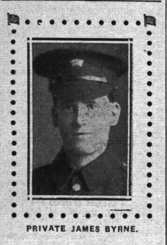 Deceased’s brother Private Edward Byrne, Royal Irish Fusiliers, was wounded in the neck and shoulder with shrapnel during the retreat before the Bulgarians. He was in hospital in Cairo and is now in Salonica.