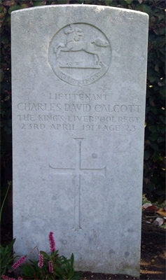 Altogether the Battalion’s losses were four officers and one hundred and one other ranks, killed, wounded or missing. Lieutenant Calcott was the only officer killed. He was aged twenty three.
