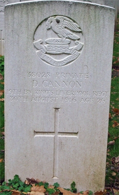 CANNON - In memory of Private Daniel Cannon (King's Liverpool's), killed in action in France on August 30th 1916.