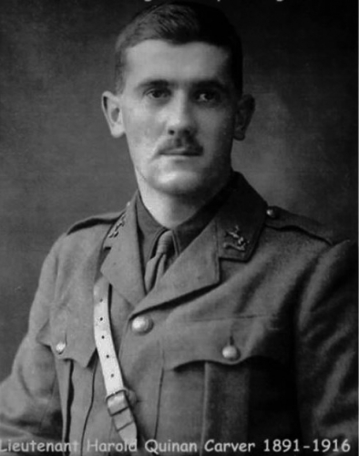“Killed in action in France on July 30, 1916, Lieut. Harold Quinan Carver, aged 25, dearly loved eldest son of Walter and Nettie Carver, of Leeton, New South Wales.”