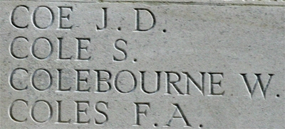 “In loving memory of G.S.M. (Stan) Cole, (“Pals”), killed in action July 30 1916, dear nephew of Mr. and Mrs. Macey, Edge Hill.”