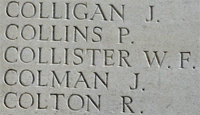 The CWGC has his service shown as Pte. 18854 J. Colligan, 1st Bn. Royal Inniskilling Fusiliers, aged 23, son of John and Ellen Colligan of 43 Yates Street, was presumed killed in action on the first day of the Battle of the Somme, 01st July 1916.