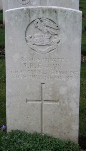 King’s(Liverpool Regiment) - Evans, 21404, R. (Colwyn Bay);