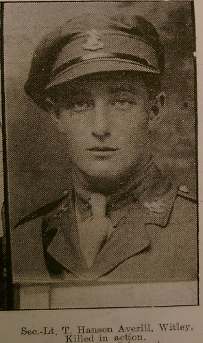 Second Lieutenant Thomas Hanson Averill, King's (Liverpool) Regiment, killed in action, on the 30th ult., was the youngest son of Mr and Mrs Averill of the Home Farm, Great Witley, Worcester, and 22 years of age. He joined the Army Veterinary Corps soon after the outbreak of war, and received his commission in April last. He proceeded on active service in June.
