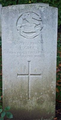 Lawrence was serving in the 19th Battalion of The King’s Liverpool Regiment as Private No 203773, attached to the Machine Gun Corps, when he was killed in action on the 18th April 1918 during the German Spring Offensive.